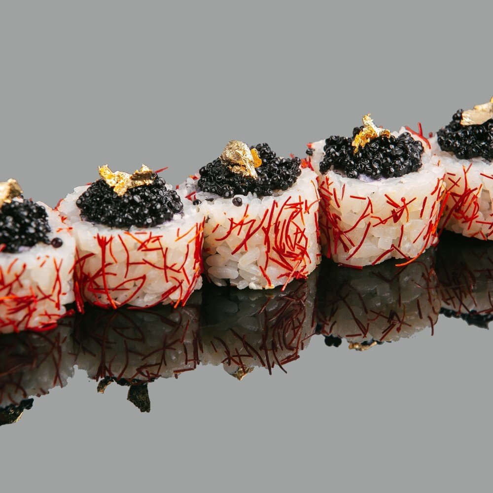 Ролл "с чёрной икрой, крабом и сусальным золотом"