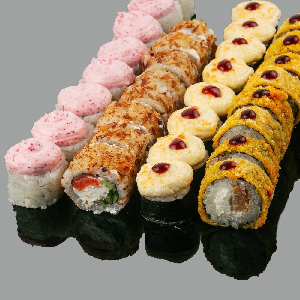 Созвездие из 4 роллов: Бонито, Лава, Запечённый с мидиями, Темпура с Томаго (32 шт)