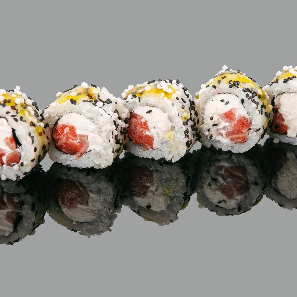 Ролл "Лосось с творожным сыром в стружке тунца"
