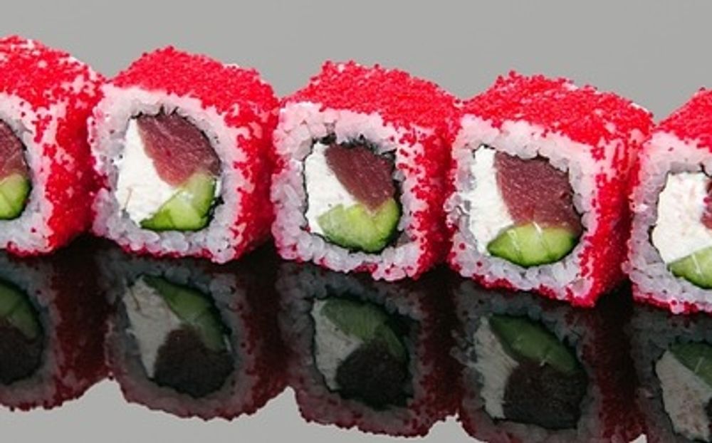 Состав: рис, водоросли нори, сыр креметте, свежий тунец, огурец, икра масаго красная. Выход: 240 гр.