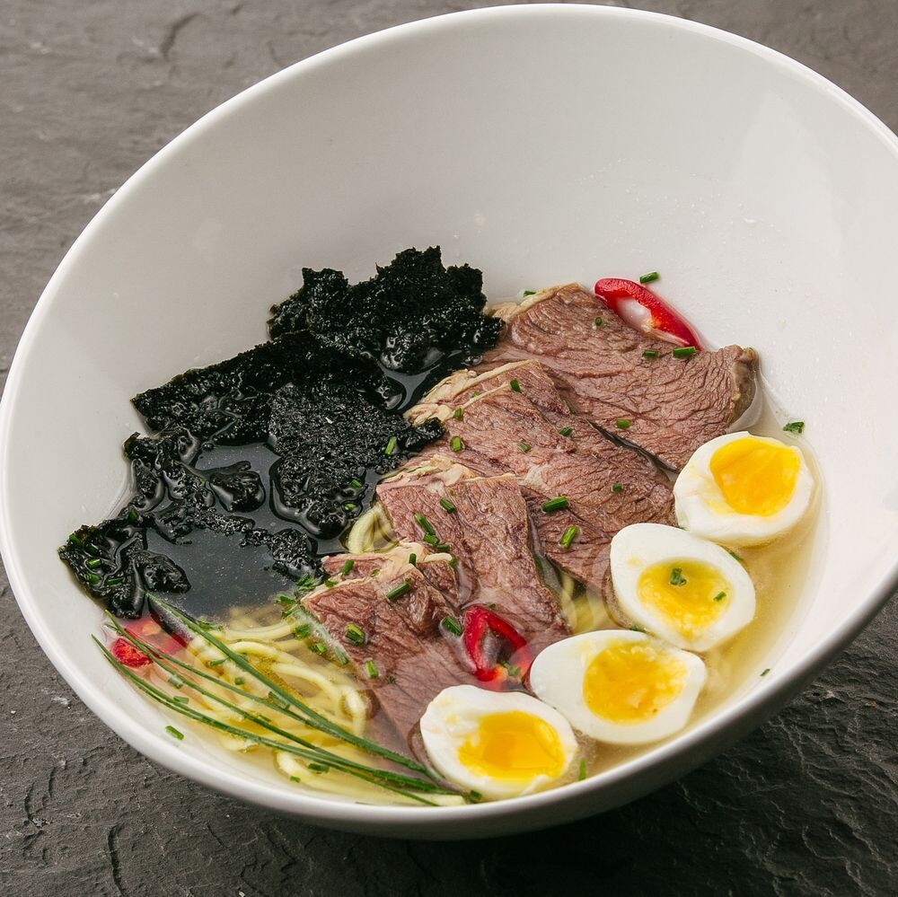 Состав: Лашпа, говядина, бульон говяжий, яйцо перепелиное, лук зеленый, имбирь, кунжут.