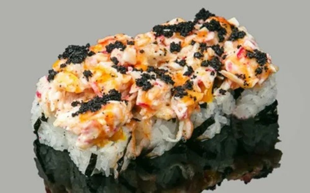 Состав: рис, сыр креметте, крабовый мусс, манговый соус, икра масаго чёрная. Выход: 350 гр.