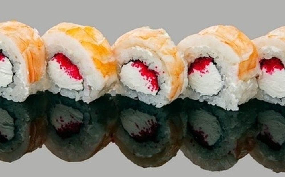 Рис, водоросли нори, творожный сыр, креветки тигровые, икра масаго красная (8 шт)