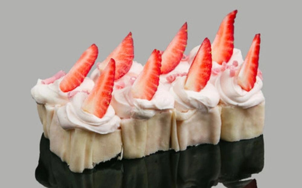 Ягодный мусс на основе творожного сыра, тесто харумаки, свежая клубника, шоколадная стружка (8 шт)