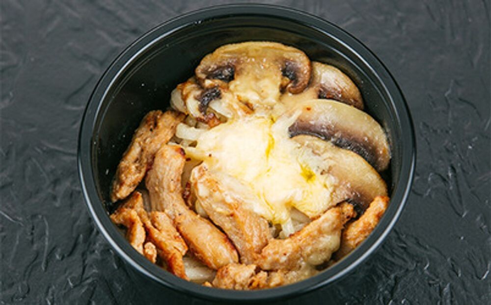 Лапша пшеничная, курица, шампиньоны, сыр, сливки, чеснок, соевый соус.