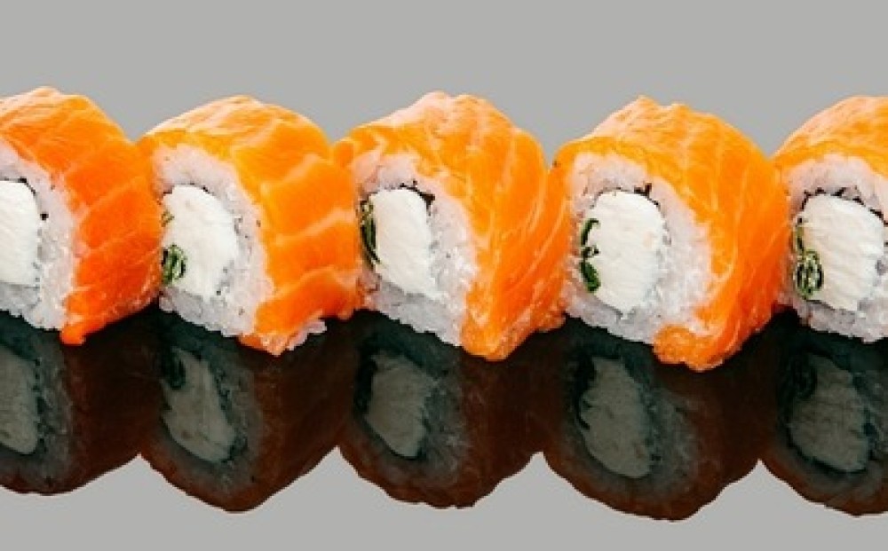Состав: рис, водоросли нори, сыр креметте, свежий лосось, лук зелёный. Выход: 250 гр.