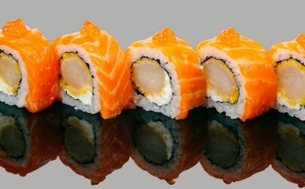 Состав: рис, водоросли нори, морской гребешок в кляре, свежий лосось, сыр креметте, икра лосося. Выход: 330 гр.